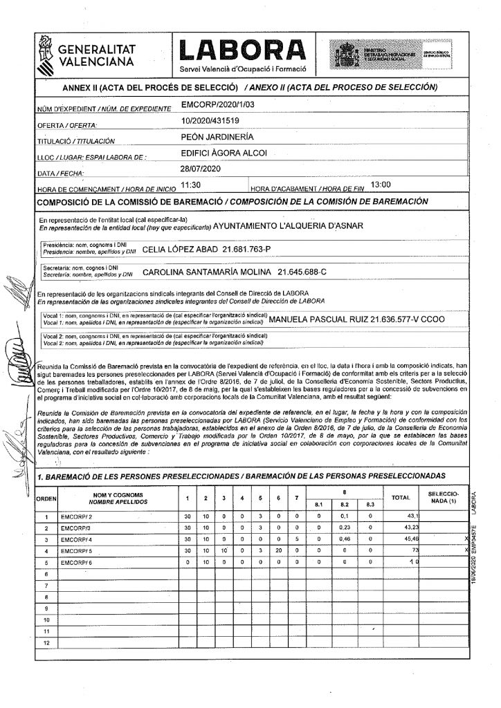ACTA PROCESO SELECCIÓN EMCORP/2020/1/03